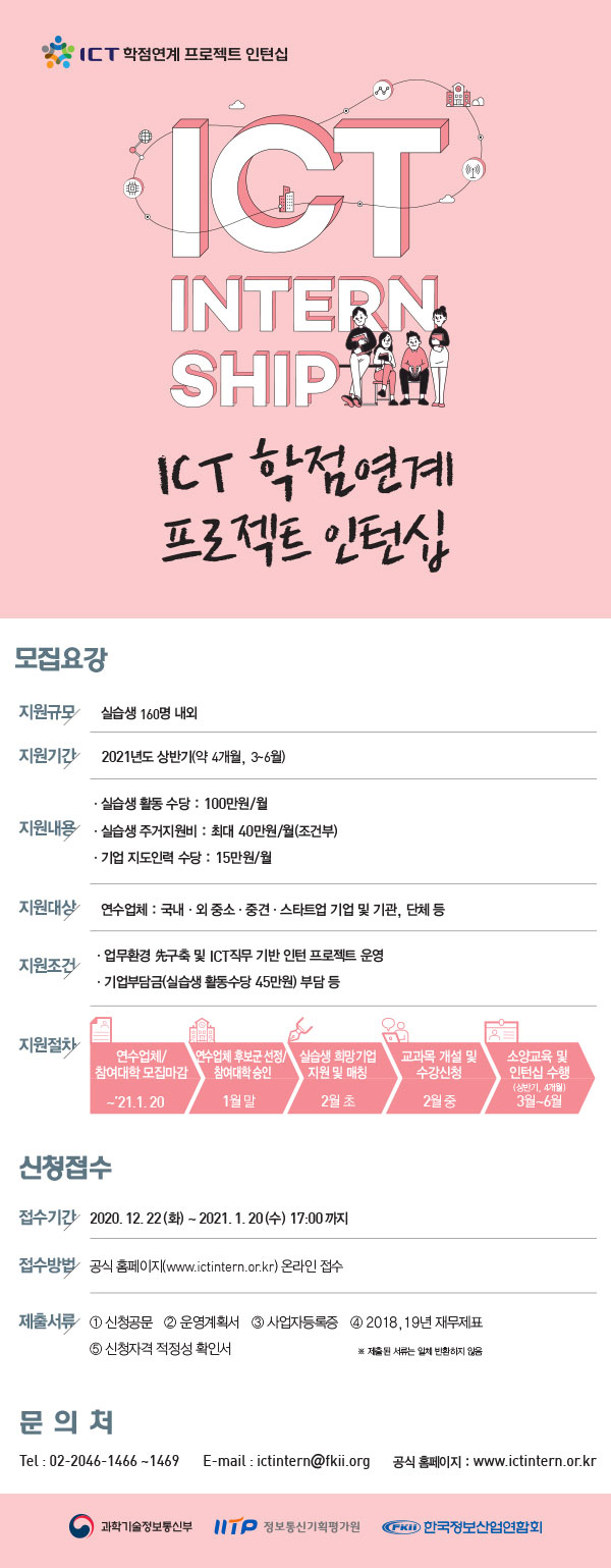 ICT학점연계프로젝트인턴십 국내과정 참여기업 모집 안내(1.20, 17시 접수마감)