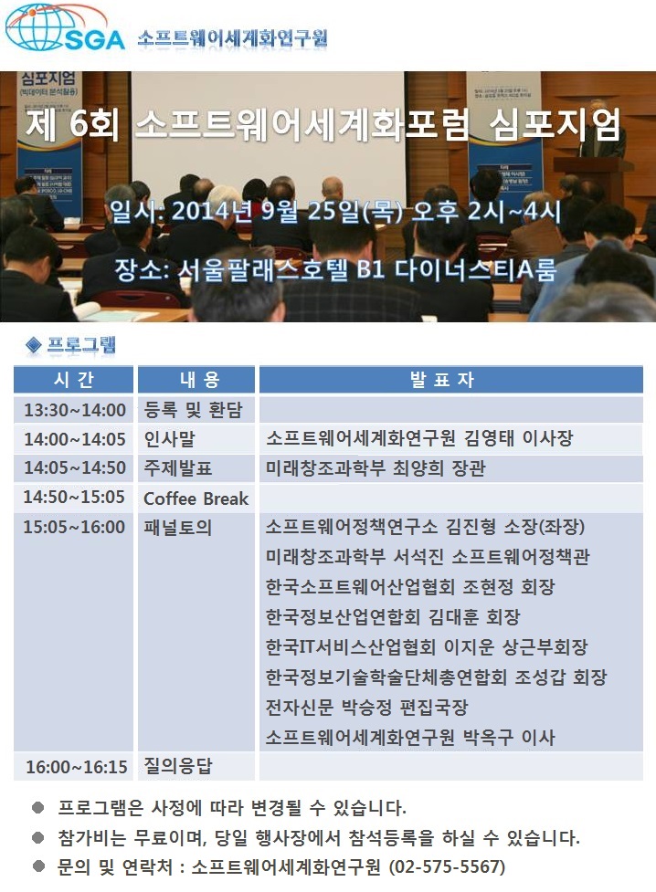 [09/25] 제6회 소프트웨어세계화포럼 심포지엄 개최 안내