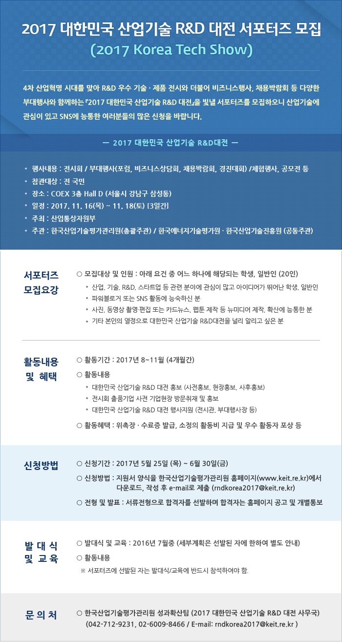 2017 대한민국 산업기술 R&D대전 서포터즈 모집